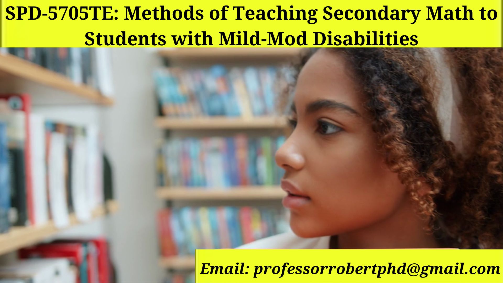 Description: Practitioners build foundational knowledge on a variety of research-based instructional strategies to encourage individuals with mild to moderate disabilities to develop understandings and connections within content areas and to build skills to apply knowledge in meaningful ways. From this foundational knowledge, practitioners select, adapt and use research-based instructional strategies and interventions in academic and specialized curricula to advance the learning of students with mild to moderate disabilities with focused attention upon mathematics at the secondary level. Please contact Your Favorite Professor for help with SPD-5705TE: Methods of Teaching Secondary Math to Students with Mild-Mod Disabilities or any other assignment. Email: professorrobertphd@gmail.com